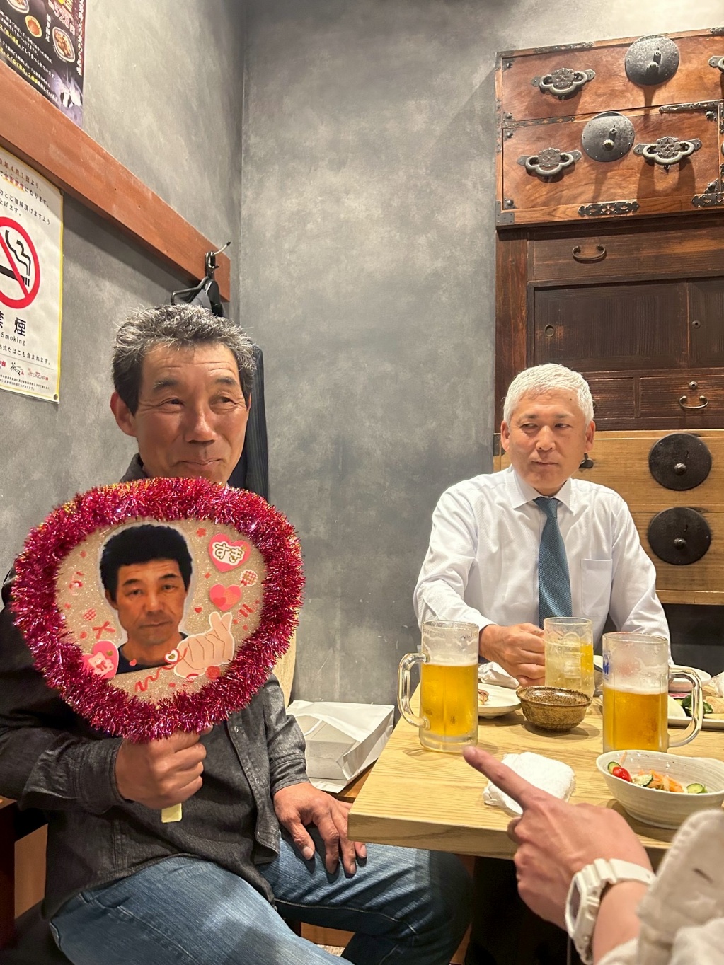 社内行事送別会2025.05.022026.03.23 本日は長年当社を支えていただいた社員さんの送別会です。今回は焼き鳥屋さんでの開催。焼き鳥を乗せる為のキャベツのお皿をお通しだと思い先に食べてしまうというハプニングもありました(笑)手作りの推しうちわのプレゼント。料理とお酒を楽しみながら、皆さん思い出話などに花が咲きます。改めて、長年のご尽力に感謝と、そして益々のご活躍をお祈り申し上げます。 Post Share Hatena LINE RSS feedly Pin it note 社内行事送別会コメント: 0ポンプ車購入忘年会