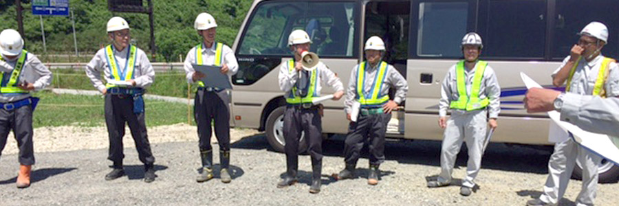 社員の安全、地域の安全、工事の安全を保つために、一人ひとりが常に事故防止・点検整備を心がけています。