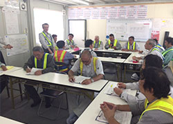 事故の事例の原因・対策についてのディスカッションや、コンクリート圧送の知識を深める講習などを学び技術の向上に努め、スタッフ全員が常に安全を意識して事故防止・労働災害ゼロに取り組みます。